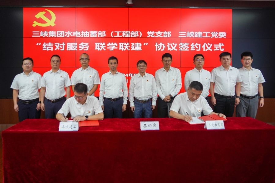 李志國和高鵬分別代表三峽集團(tuán)水電抽蓄部黨支部與三峽建工黨委簽訂“結(jié)對服務(wù)聯(lián)學(xué)聯(lián)建”協(xié)議書。雙方以“黨建引領(lǐng)、融入融合、互學(xué)互助、共創(chuàng)佳績”為目標(biāo),將全方位、有組織、有重點地開展黨建聯(lián)建活動,進(jìn)一步凝聚發(fā)展合力,以高質(zhì)量黨建引領(lǐng)保障水電抽蓄業(yè)務(wù)高質(zhì)量發(fā)展。