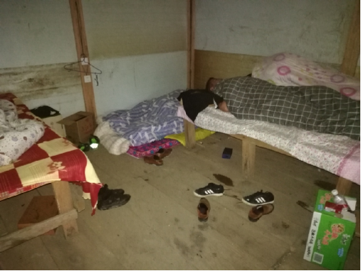 如何入睡依然是一件困難的事情,因?yàn)?000米海拔的地方常年潮濕陰冷,牧民家的出租屋內(nèi)與屋外潮濕陰冷程度基本沒(méi)有分別,床位不夠、被子不厚、而且又霉又潮,根本無(wú)法抵御夜里的寒冷。所以我們煮了一大鍋不知名的白酒,喝酒吹牛,醉了就被大家伙抬去睡覺(jué),至于喝醉了發(fā)酒瘋的同事恐怕就有點(diǎn)麻煩,不過(guò)我是見(jiàn)不著了,因?yàn)槲揖屏坎睿瑢儆诒容^早被抬去睡覺(jué)的那一類(lèi)。