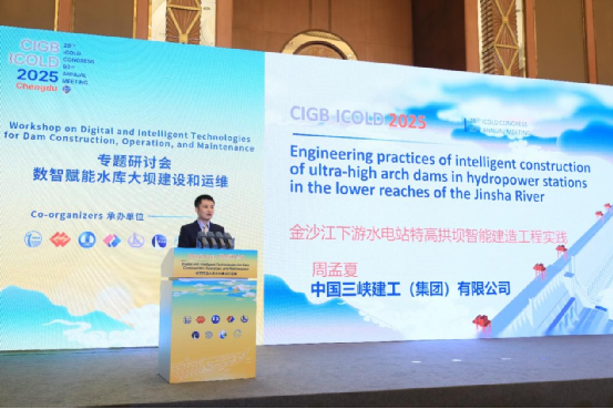 金沙江下游工程管理部主任助理周孟夏同志代表公司作“金沙江下游水電站特高拱壩智能建造工程實(shí)踐”主旨報(bào)告,展示了公司在金沙江下游溪洛渡、白鶴灘、烏東德等世界級水電工程特高拱壩施工全過程智能建造關(guān)鍵技術(shù)研究成果。